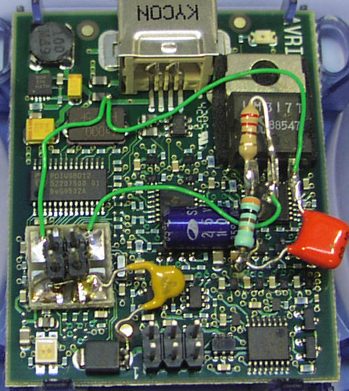 The extra added LM317 uses 5V USB power as input, 220 Ohm and 300 Ohm to make 3V.
