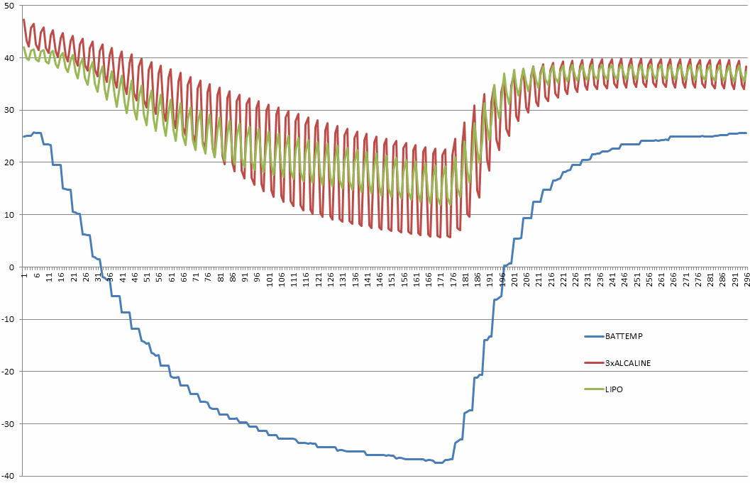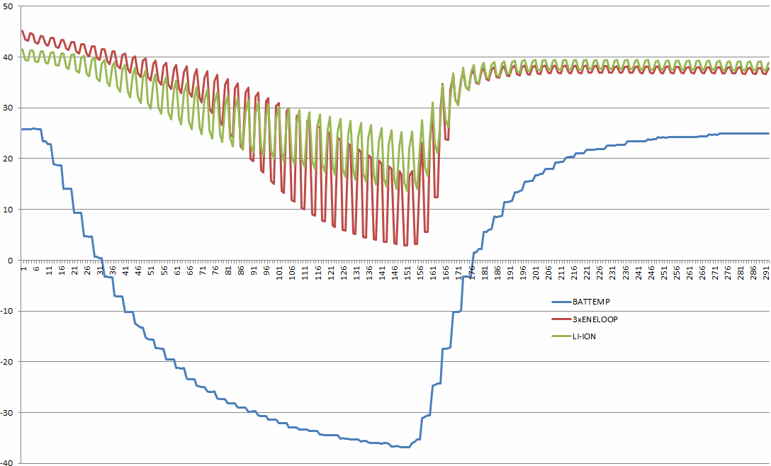 at the same time we found a special low temperature cell and compared a heated LION cell with it.