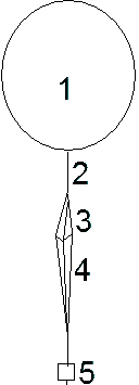 1 Large weather balloon filled with helium 2 nylon line 3 parashute 4 nylon line 5 payload box