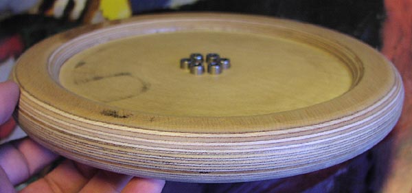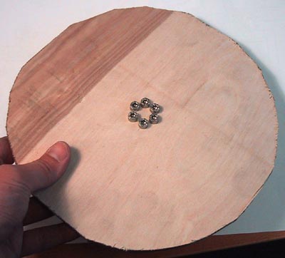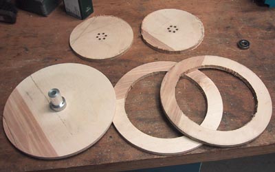 First I made an aluminium hub with six M5 threads, the 3 plywood plates was cut out,