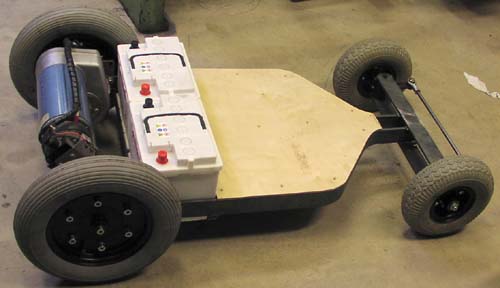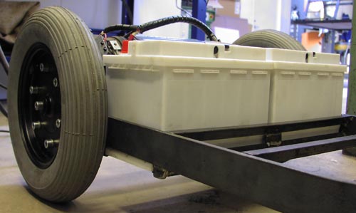 Weight break down: Chassis with motor unit = 32.7kg, Front wheels = 3.4kg, Rear wheels = 7.8kg, Battery = 14.5kg x 2