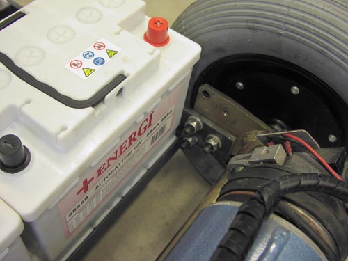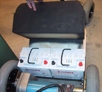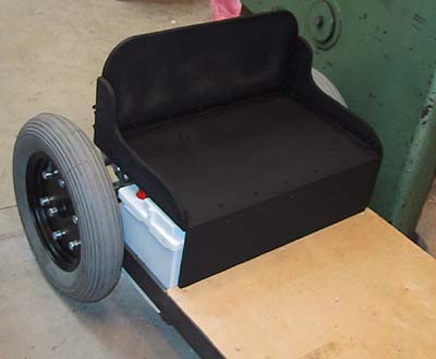 The seat can be opened using hinges, then access to chargeplug, batteries and speedregulator will be easy.