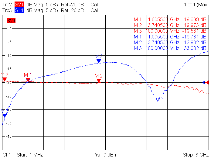 Returnloss = -12 at 3.7GHz, -20 at 1GHz, -33 at 100MHz