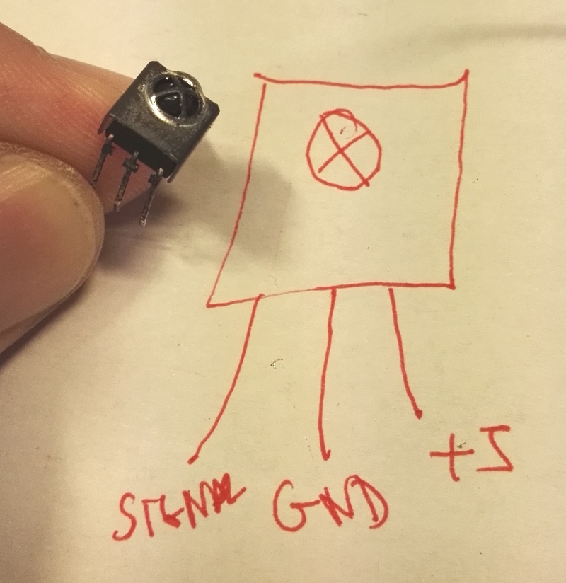 This was supposed to be a one-night-project, so i had to visit the local junkyard, easy to find samsung equipment, broke off the IR receiver for free.