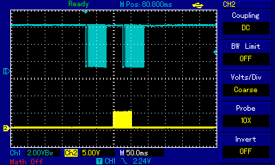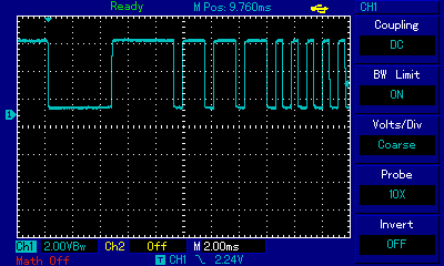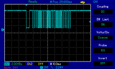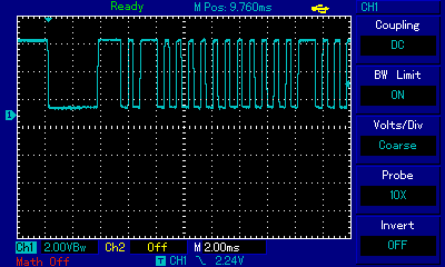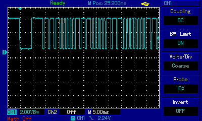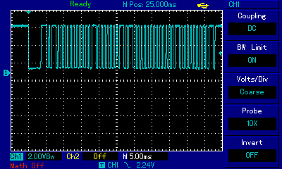 Lets see on a scope, what the demodulated IR signal looks like, LOW DATA = IR signal. (Samsung)