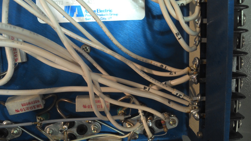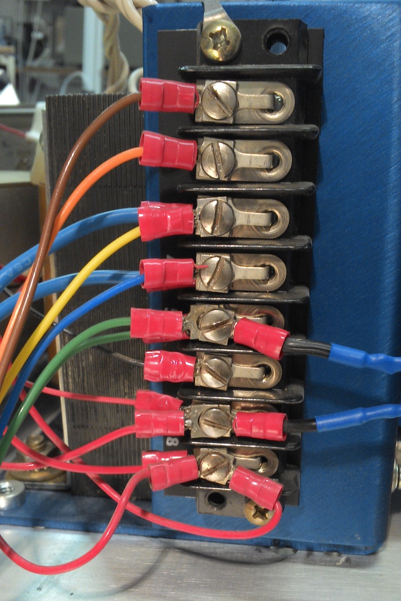 Wires back side of terminals