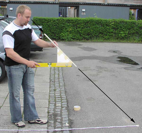 Looking through the PVC tube, and aiming at the antenna top, while holding the water straight