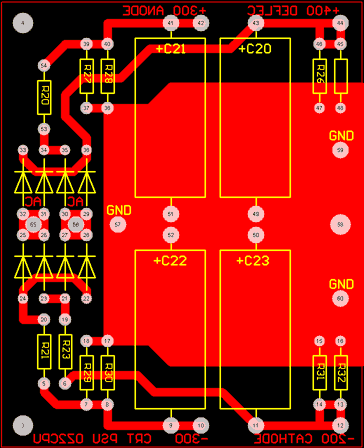 Voltages written on the schematic are optimal values for a DG7-32 CRT.. but other tubes can also be used, read below.