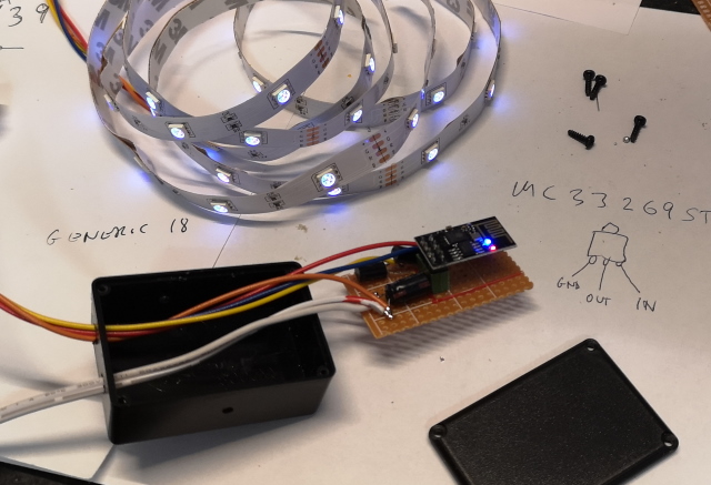 This one is going to be hidden behind a table, so I just reused an old case, with some holes from something else