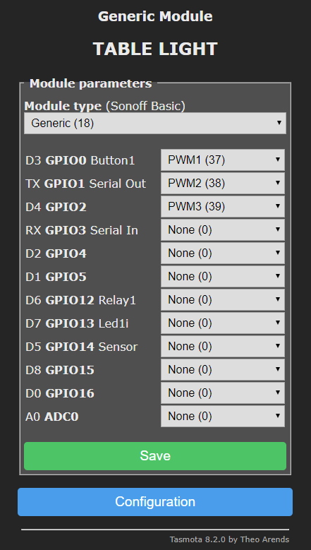 (if you are using any other type of ESP hardware, you got access to more pins, and can make much more at the same time)
