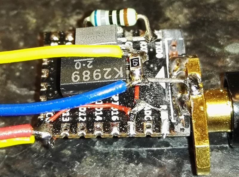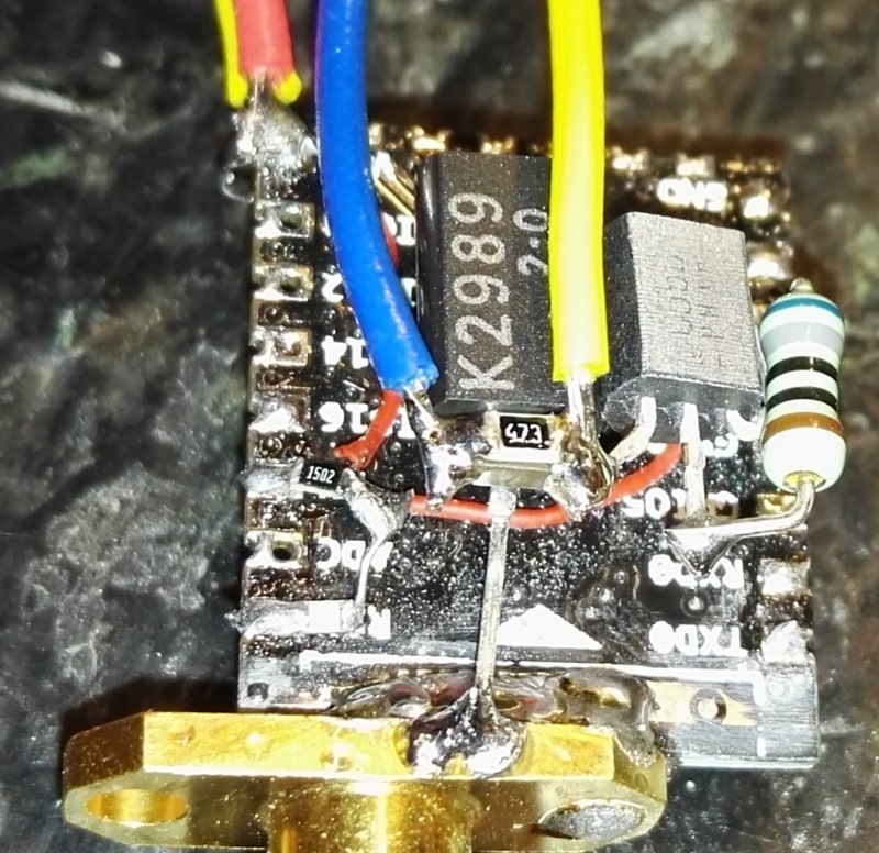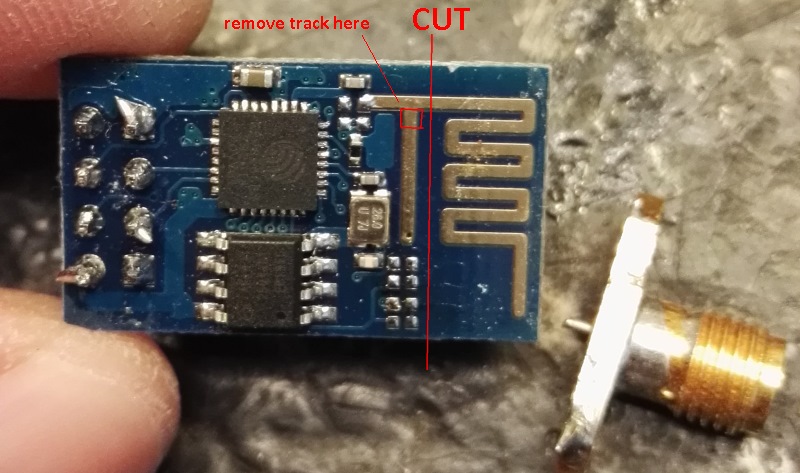 ESP12E with SMA connector, note the much smaller distances, so a lot harder to solder.