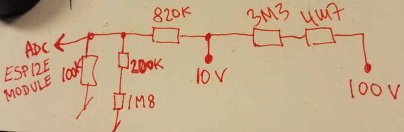 AND there is a voltage divider on the ADC input, 100k to gnd, and 220k in series with analog in.