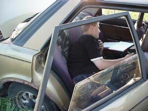Here is OZ4JIM and OZ7AKT making the power cords fits the car battery.