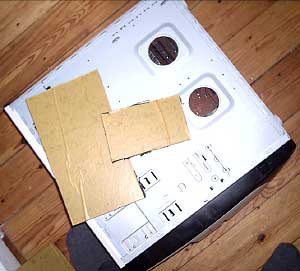 Inside the bottom of the case is mounted some, to avoid sound refelctions, and also increase mass.