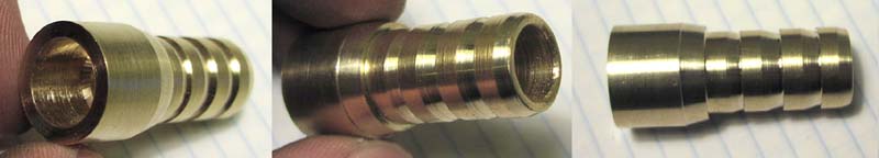 Here is the homemade brass fitting for the thick output hose
