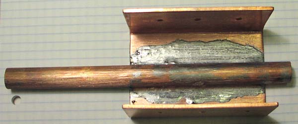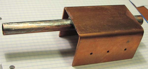 The water inlet end outlet, was soldered last, using a wet towel to cool down the main copper part