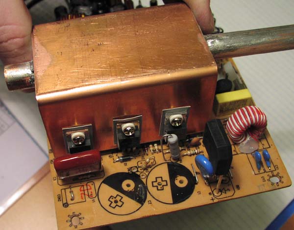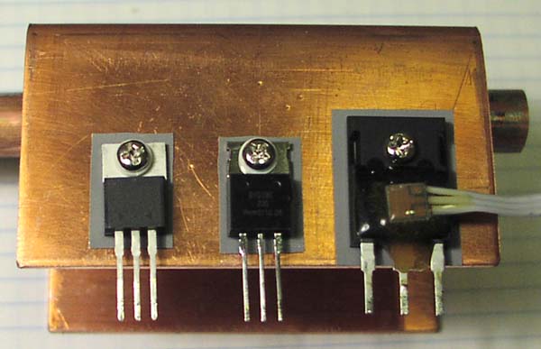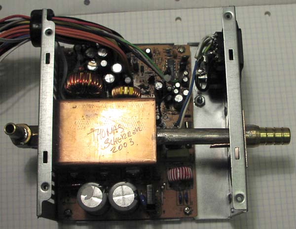 To cool the transformator also, I glued two small copper plates, from the trafo to the copper tube