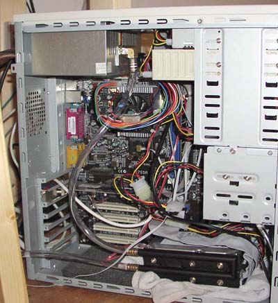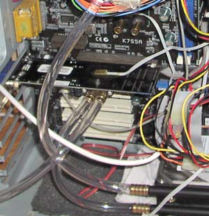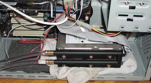 When the system was complete, I added some white heat transfer compound to this watercooler.