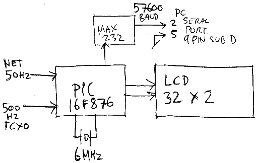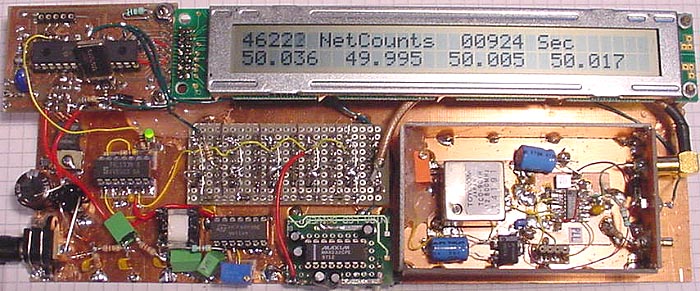 Det måles netpulser i 1000 sekunder, de sidste 4 målinger vises på et indbygget 32 x 2 LCD display