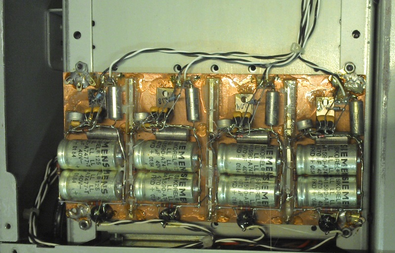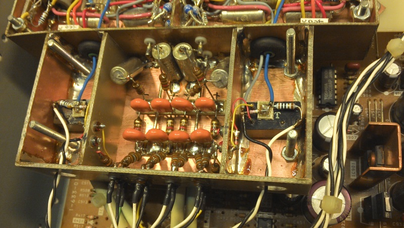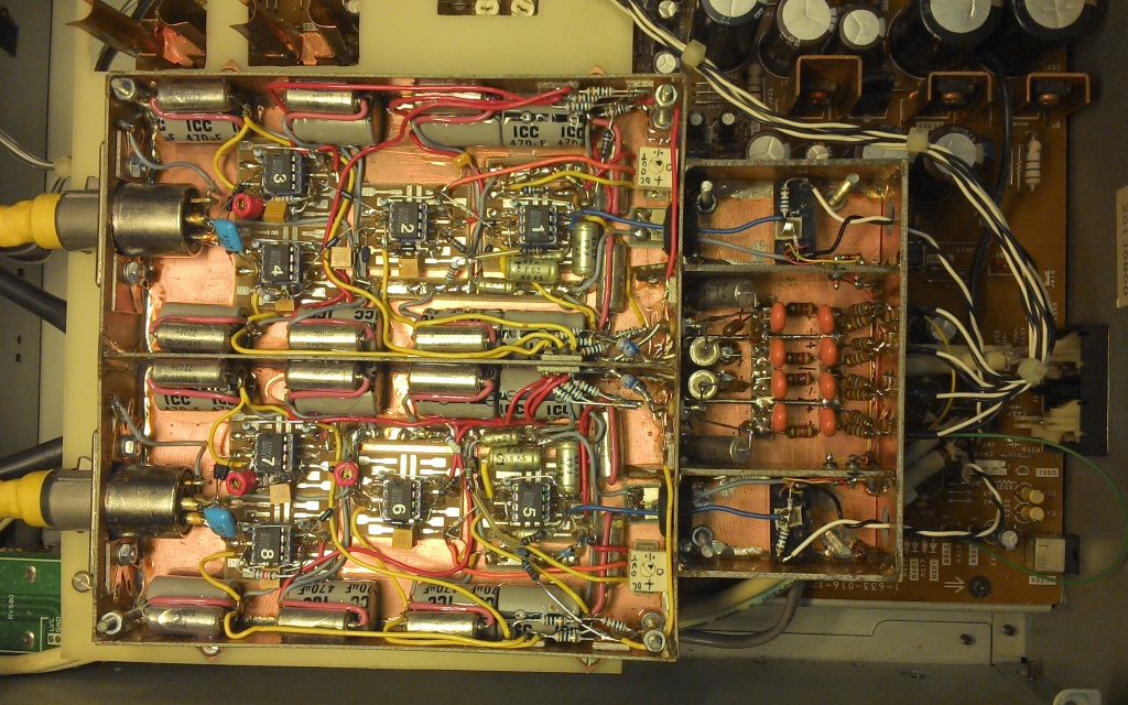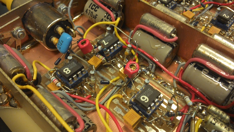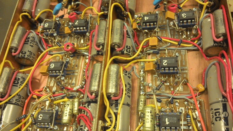 op-amps are mounted inside the PCB box, and all powersupply filters in another box, and regulators outside box..