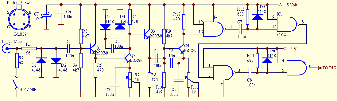 This input circuit with 4 BSX 89 have a sensitivity of about -60 to -50 dBm !