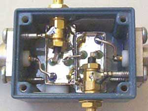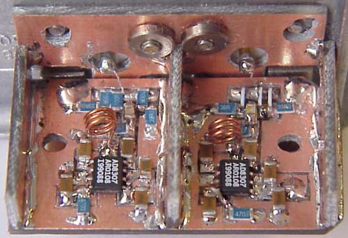 den har målene 14x9x3.5. Forpladen er et stykke printplade. Jeg har brugt SMA konnektorer. (OZ2TG)