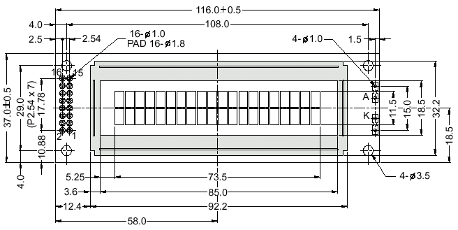 Her er mål på displayet. Det sværeste og mest tidskrævende er kassen og det store firkantede hul til displayet.