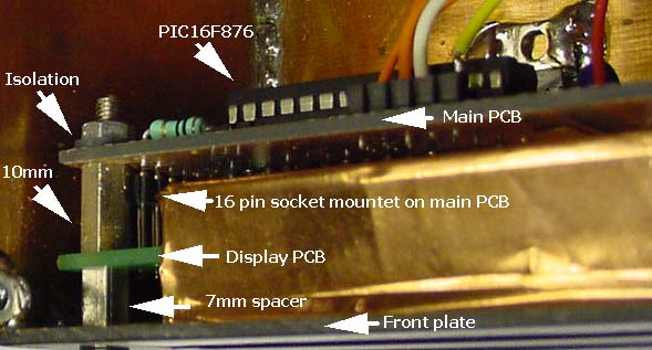 16 stykker monterings tråd føres ind igennem lodde Ø'erne på displayet og ned i soklen der er monteret i printet.