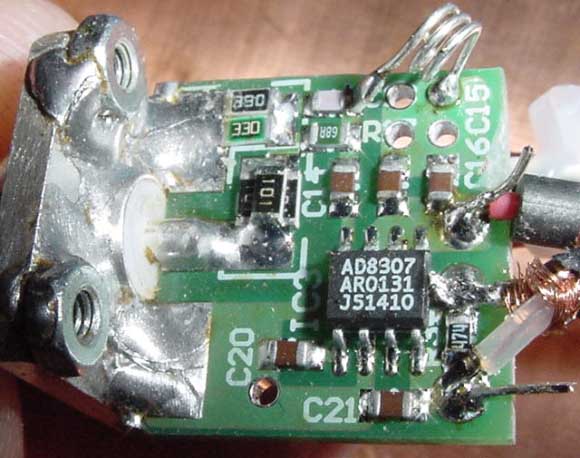 Brug også denne fremgangsmåde med AD8307 kredsen: Fortin lodde ø nr. 3 først, monter IC helt lige med pincet og kolben