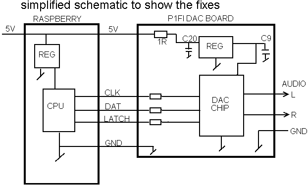to make a usefull supply for the dac, the ground from PI is broken hi-frequency wise with a ferite bead called R8 on pifi 1.00