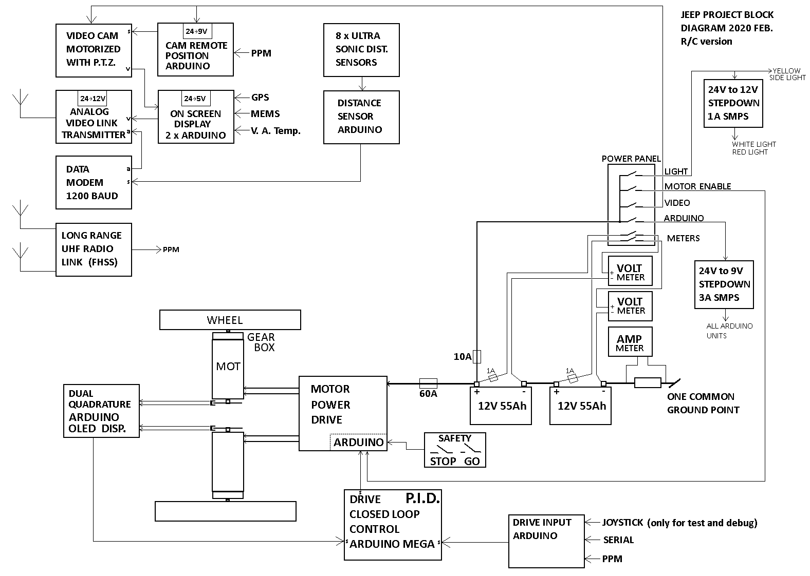 | Battery 2 x 12V 55Ah | Camera and Dist Sensors | Charger and its upgrade |