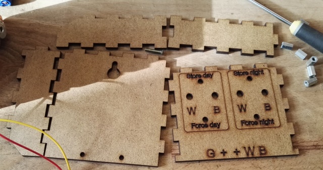 Det tager lasermaskinen få minutter at skære en kasse ud i 4mm MDF samt at skrive tekster på