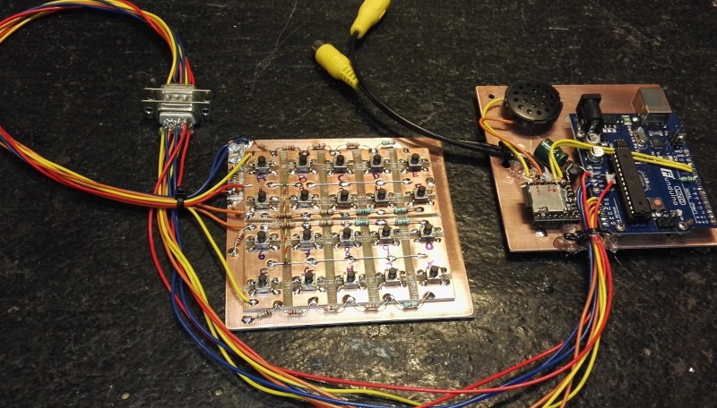The same function, same feel, is simply made using Arduino CPU card, to read the buttons, and start the correct music file on a little SD card player