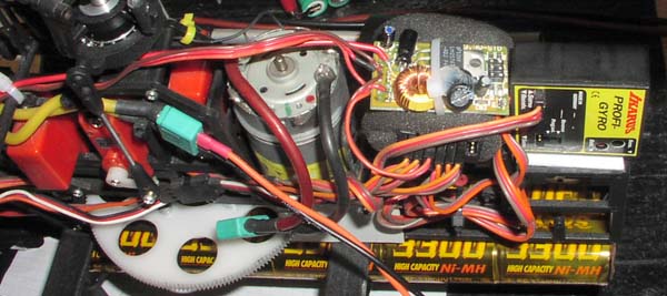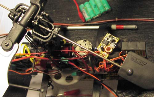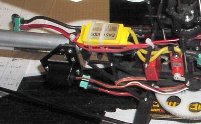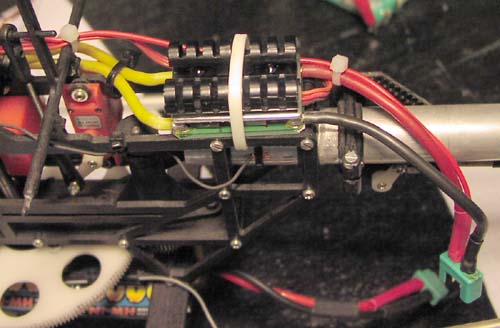 Here the new BEC is mounted just on top of the reciever. The Switchmode BEC regulator and convert any input voltage,