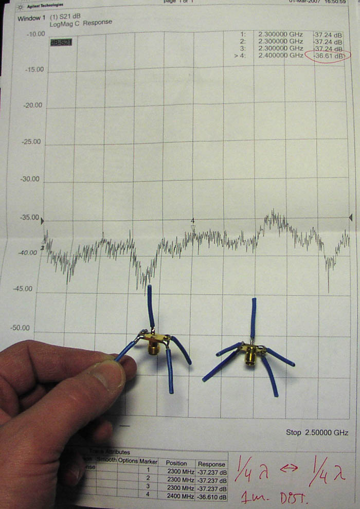distance from antenna to antenna exactly one meter, cables and plugs calibrated