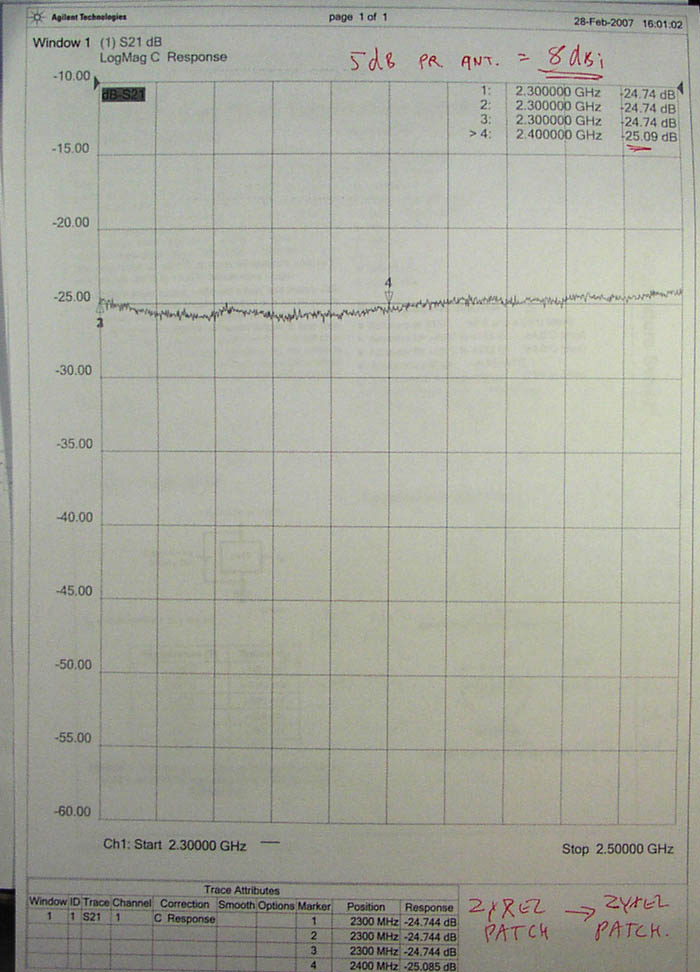 Curve 6: Zyxel to Zyxel patch - again angle is important, best result -25dB