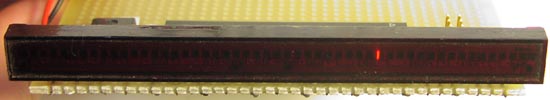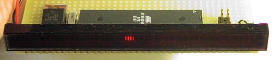 One LED lit up, funny looking LED's I guess they measure 1.2 by 0.2 mm each.